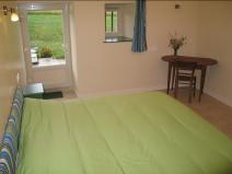 Une chambre avec un lit double , une chambre avec trois lits simples. |